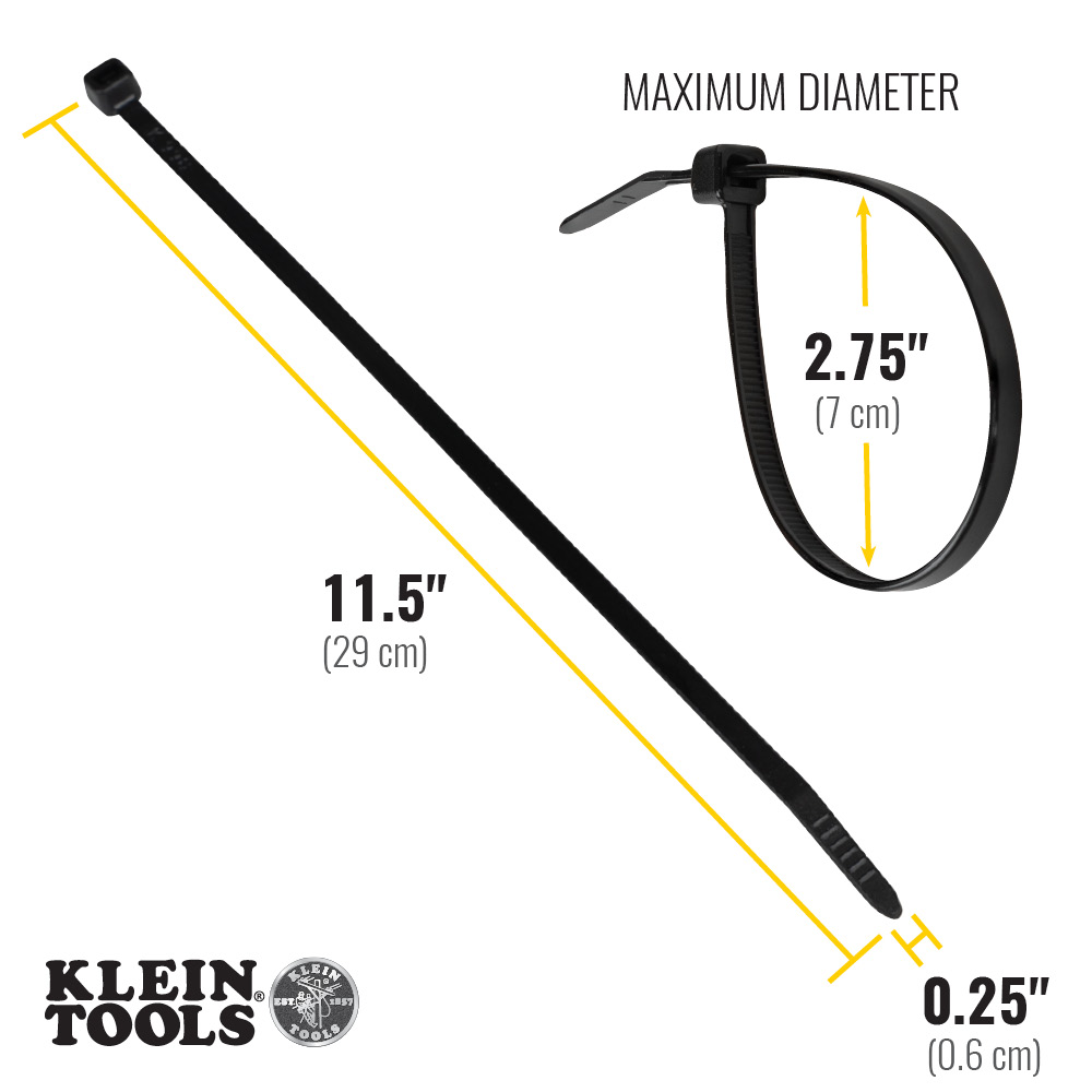 These premium, heavy-duty cable ties are used to wrap and contain cables and other items. With 50 lbs of tensile strength, these ties offer a strong hold. Made of nylon for durability. Available in 11.5'' lengths.