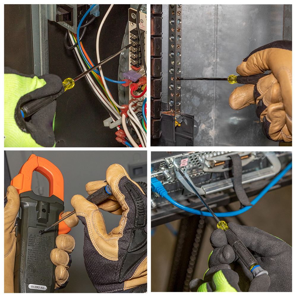 Designed for precision work, Klein's electronics screwdrivers feature a rotating cap for optimum control. Made of the highest quality tempered steel, carefully heat treated for maximum strength, and precision ground to fit screw openings securely. Rotating caps and Klein's exclusive Cushion-Grip™ handles offer outstanding comfort and control.