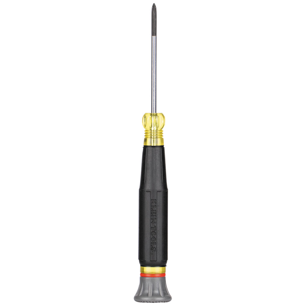 Designed for precision work, Klein's electronics screwdriver features a rotating cap for optimum control. Made of the highest quality tempered steel, carefully heat treated for maximum strength, and precision ground to fit screw openings securely. Klein's exclusive Cushion-Grip™ handle offers outstanding comfort and control.
