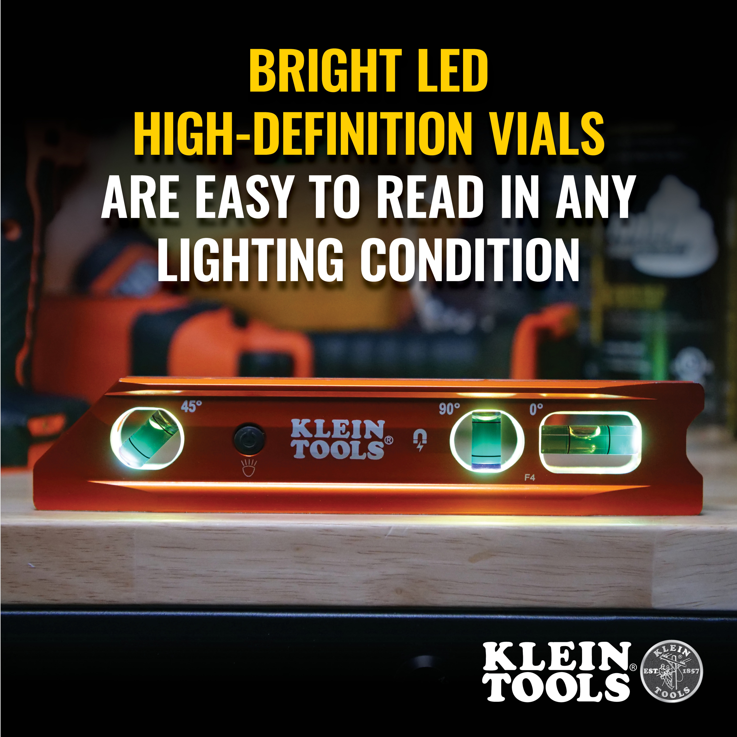 - Level's large, bright LED high-definition vials are easy to read in any lighting condition