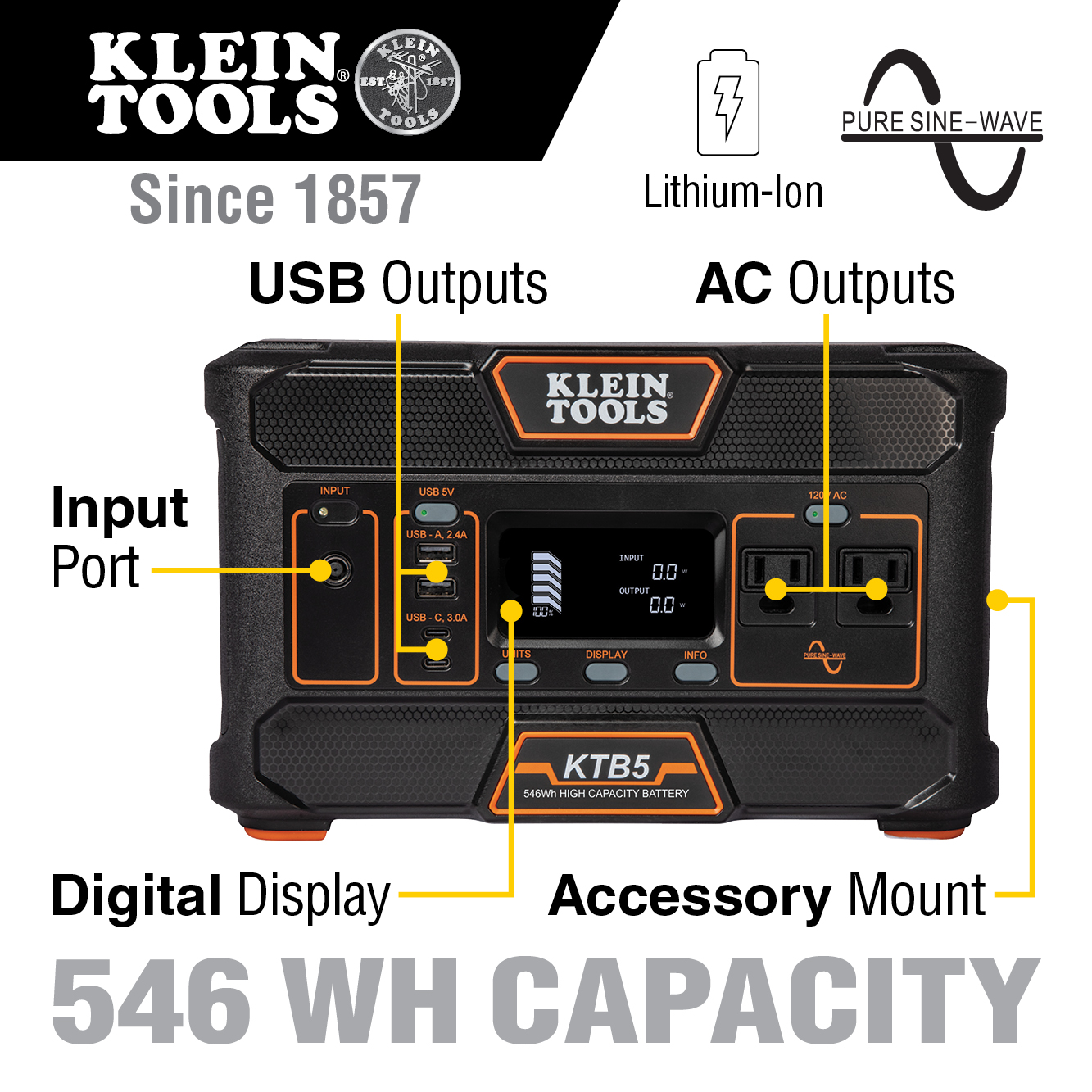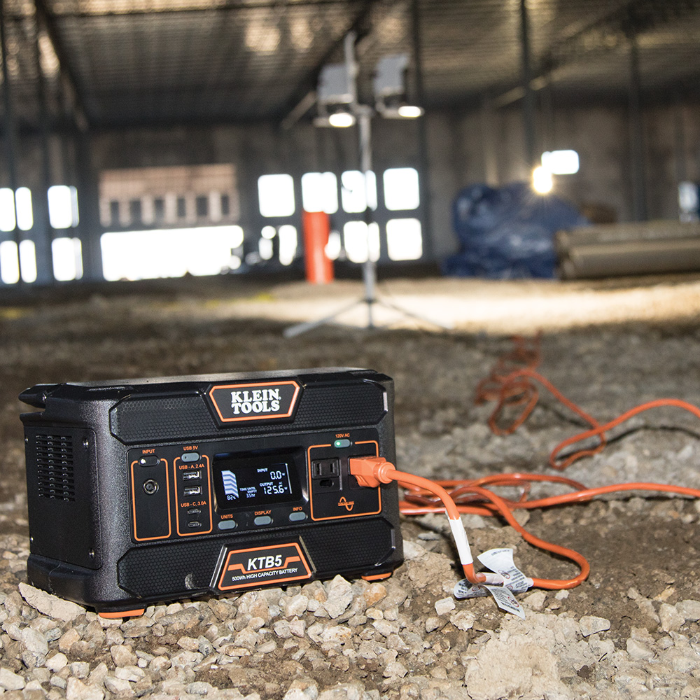 Klein Tools’ Portable Power Station is a silent, emission-free 546 Wh lithium-ion battery that supplies pure sine-wave power. This high capacity power station is a cleaner alternative to loud, exhaust-filled gas generators. At 14 pounds, the multiple AC outlets and USB ports easily go wherever you need to plug in. By powering on-site electronics, lights, fans, battery chargers and small battery-operated tools, your job site keeps on task.
