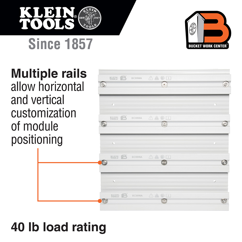 • Multiple rails on the Bucket Work Centre Wall Assembly allow for horizontal and vertical customisation of the module positioning