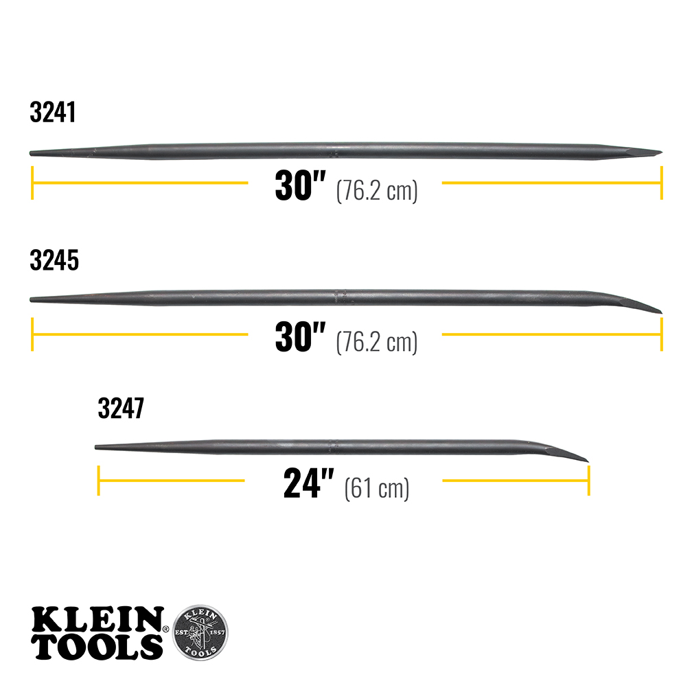 Klein Tools Round Connecting Bars are designed to provide extra leverage when positioning steel members and aligning bolt holes. Round bars are made of hardened steel for durability and long life. These forged fit-up bars are pointed at one end for versatility.