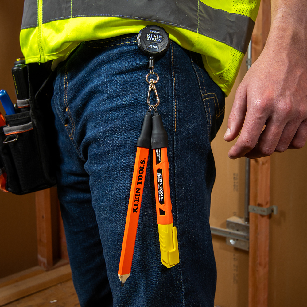 Klein's Skribes™ Paint Marker in yellow paint features a durable, acrylic tip that creates clear, long-lasting lines for markings and labelling on jobsite materials. Engineered to resist clogging and crafted with high-quality paint that writes on the toughest jobsite materials. The anti-roll triangular shape and integrated hard hat clip keeps the writing utensil accessible and within reach on the job.