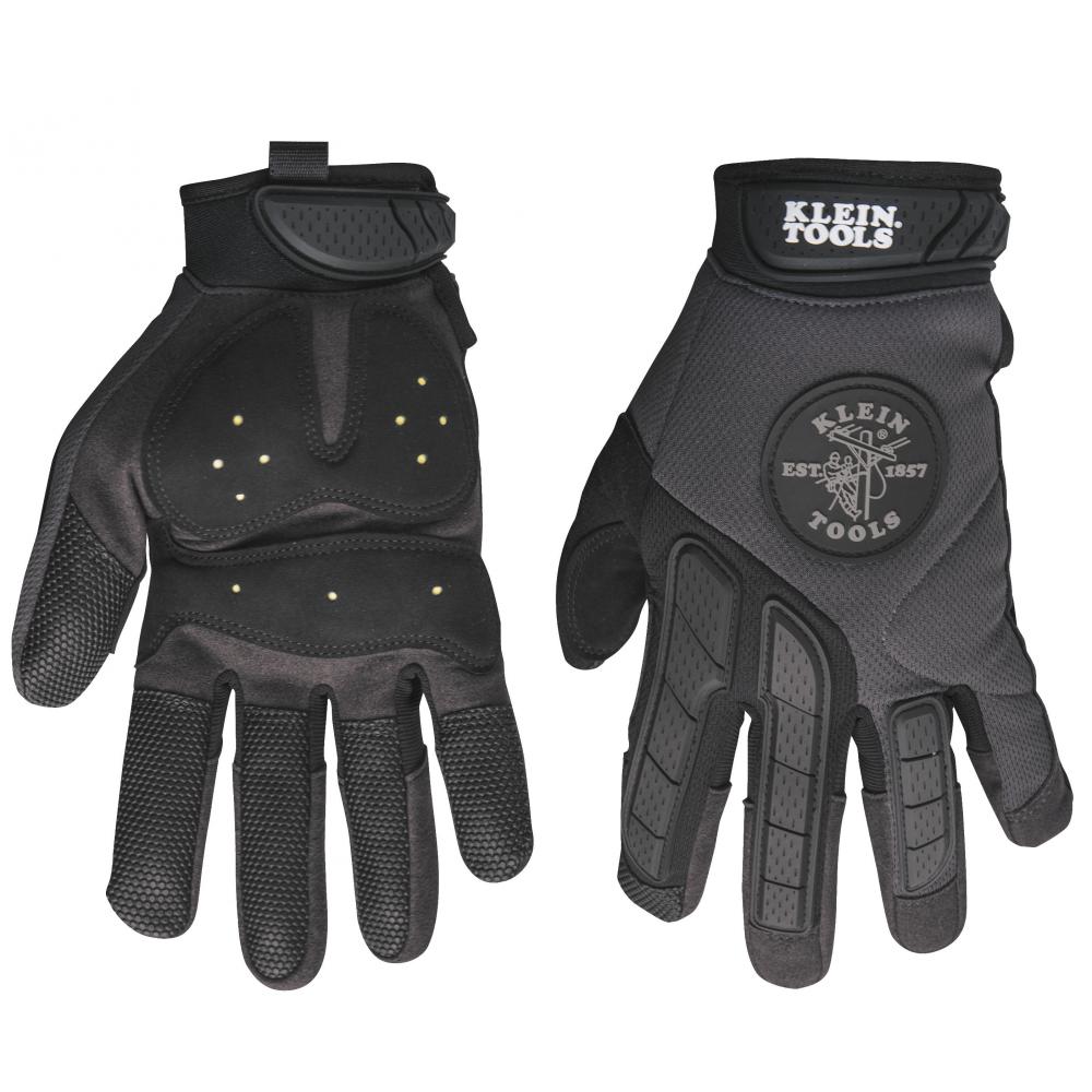 The Klein Tools Journeyman Grip glove offers protection and ample gripping capability in wet and dry conditions. D30® padding material in the palm absorbs impact. Perfect for wire pulling. Neoprene cuff and soft moulded-rubber closure with hook and loop secures fit.